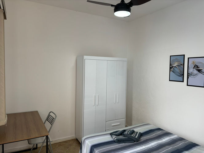 Cama Casa, Ventilador de Teto, Mesa de Trabalho. Cozinha, garagem, Sala de Estar e Banheiro compartilhados.
